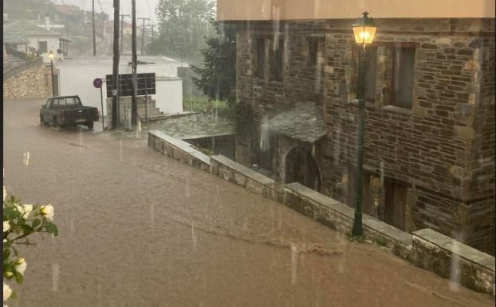 Tα ακραία καιρικά φαινόμενα χτύπησαν με σφοδρότητα και το Νότιο Πήλιο πλημμυρίζοντας δρόμους στη Ζαγορά και στις Μηλιές.