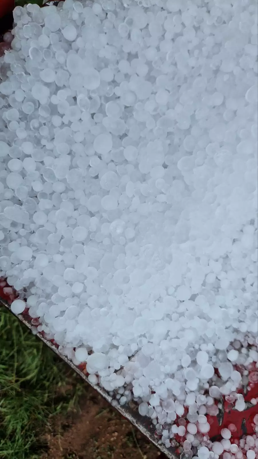 «Χαλασμός στην Ανατολική Εορδαία. Ισχυρή καταιγίδα με χαλάζι έπληξε περιοχές των Κομνηνών, ο μετεωρολογικός σταθμός του συνεργάτη παραγωγού Κακαράντζα Γιάννη, κατέγραψε 53μμ νερού ενώ οι εικόνες από το χαλάζι είναι ενδεικτικές».