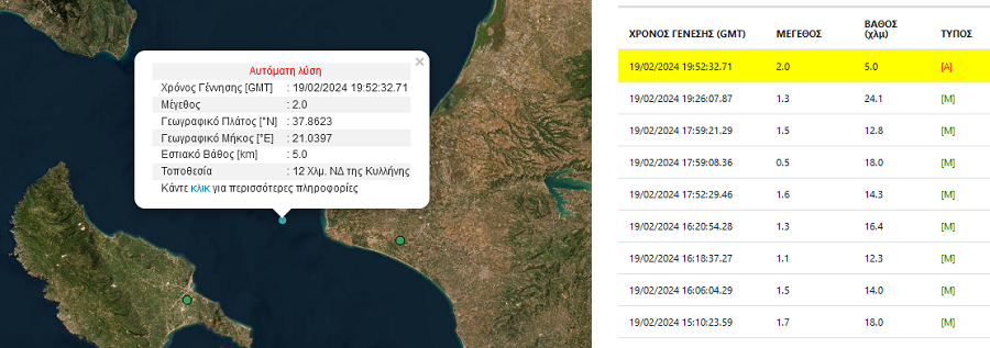 Το βράδυ της Δευτέρας (19/2), σημειώθηκε σεισμική δόνηση μεγέθους 2 βαθμών της κλίμακας Ρίχτερ στην Κυλλήνη.