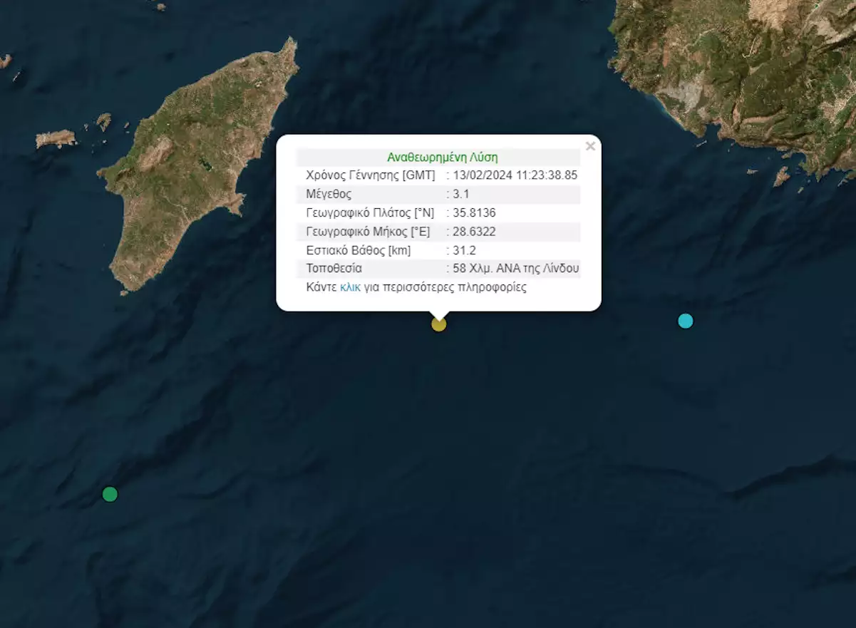 Η δόνηση προέρχεται από τον θαλάσσιο χώρο που βρίσκεται σε απόσταση 58 χιλιομέτρων ανατολικά – νοτιοανατολικά της Λίνδου.