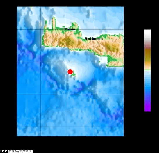 Το ακριβές επίκεντρο τη δόνησης εντοπίζεται στα 57 χλμ. νότια της Γεωργιούπολης Χανίων.