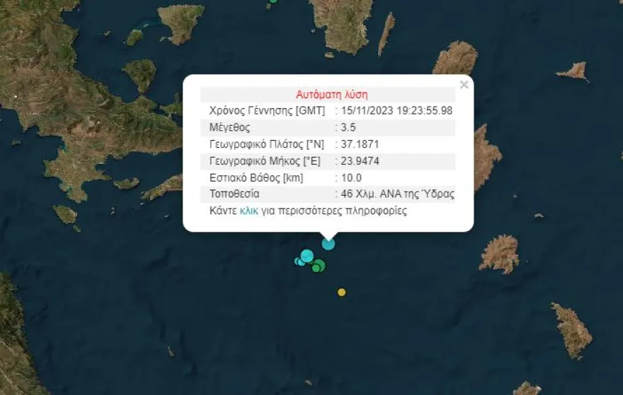 Η δόνηση έγινε 46 χλμ ανατολικά της Ύδρας.
