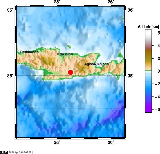 Στις 02:58 τα ξημερώματα της Τετάρτης (3/4), σημειώθηκε σεισμική δόνηση μεγέθους 3,5 βαθμών της κλίμακας Ρίχτερ στο Ηράκλειο Κρήτης.