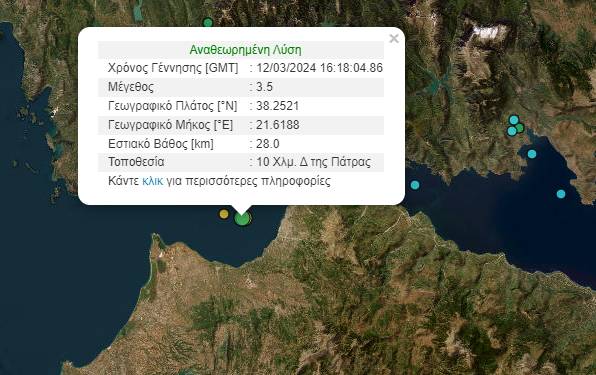 Σεισμική δόνηση 3,5 Ρίχτερ καταγράφηκε σήμερα (12/3) το απόγευμα στην περιοχή του Πατραϊκού.
