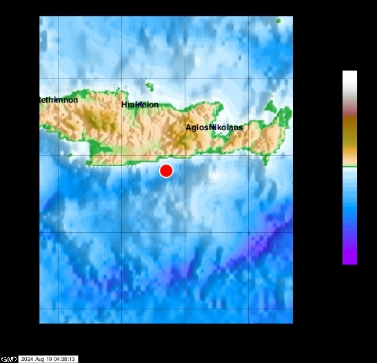 Σεισμός μεγέθους 3,7 βαθμών της κλίμακας Ρίχτερ σημειώθηκε το πρωί της Δευτέρας (19/8) στις 07:23, στο Νότιο Κρητικό Πέλαγος.