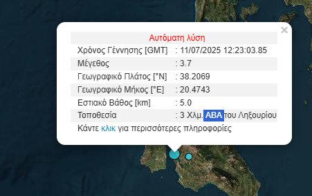 Ειδικότερα, σύμφωνα με την αυτόματη λύση του Γεωδυναμικού Ινστιτούτου, το επίκεντρο του σεισμού εντοπίζεται 3χλμ. ανατολικά – βορειοανατολικά του Ληξουρίου με εστιακό βάθος 5 χλμ.