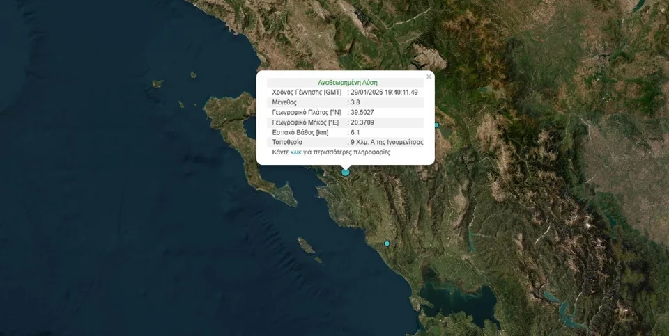 Σεισμική δόνηση μεγέθους 3,8 βαθμών της κλίμακας Ρίχτερ σημειώθηκε το βράδυ της Πέμπτης (29/1) στην Ηγουμενίτσα.