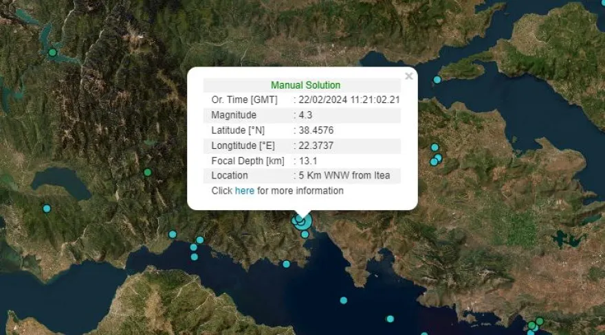 Το μεσημέρι της Πέμπτης (22/2), σημειώθηκε σεισμική δόνηση μεγέθους 4,3 βαθμών της κλίμακας Ρίχτερ στην Ιτέα.