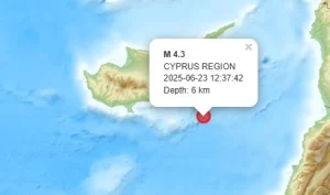 Σεισμική δόνηση 4,3 Ρίχτερ ανοιχτά της Κύπρου