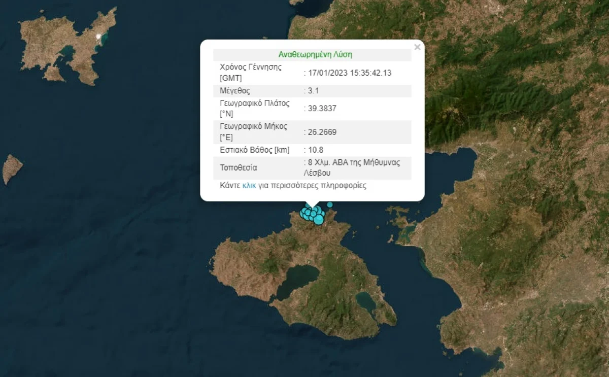 Σεισμός 3,1 ρίχτερ σημειώθηκε στις 17:35 στη Λέσβο.