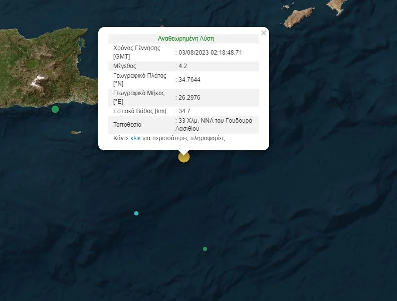 Δείτε χάρτη με το επίκεντρο του σεισμού
