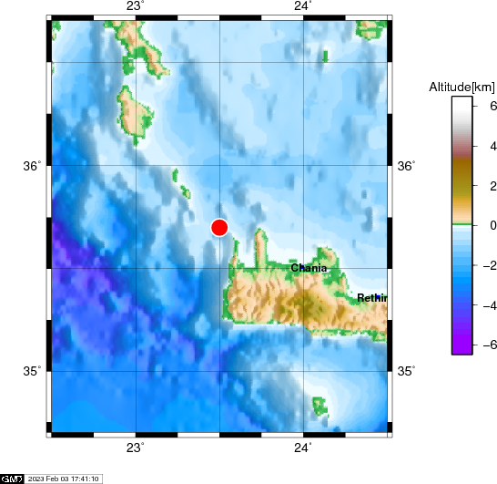 Σεισμική δόνηση 3,4 βαθμών της κλίμακας Ρίχτερ σημειώθηκε το απόγευμα της Παρασκευής (3/2) ανοιχτά της Κρήτης.