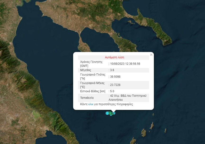 Σεισμός 3,6 Ρίχτερ ανοιχτά της Αλοννήσου