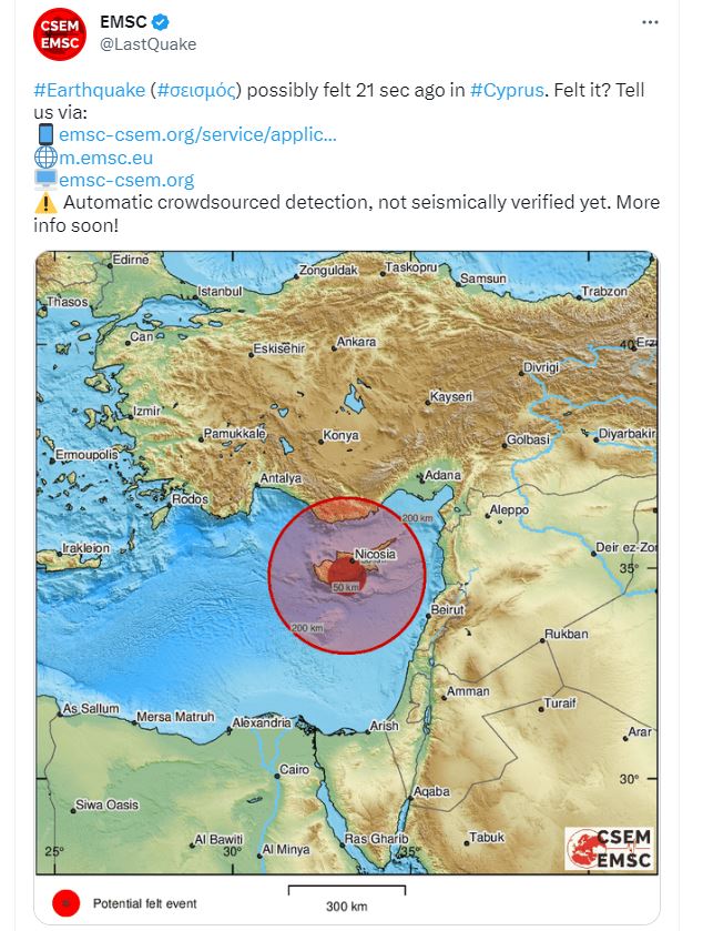 Ο σεισμός έγινε αισθητός στην πόλη της Λεμεσού και την γύρω περιοχή.
