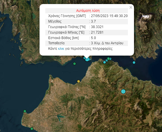 Συγκεκριμένα, ο σεισμός έγινε 3 χλμ δυτικά του Αντιρρίου με εστιακό βάθος 5 χλμ.