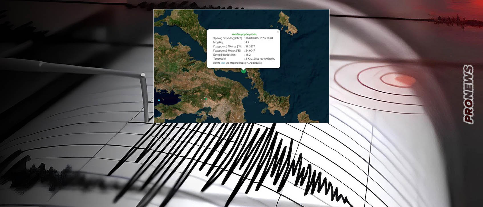 Ταρακουνήθηκε η Βόρεια Αττική, η Εύβοια και Βοιωτία από τον ισχυρό σεισμό των 4,4 Ρίχτερ τελικά (μετά από αναθεώρηση) που σημειώθηκε το απόγευμα της Πέμπτης 30 Ιανουαρίου στην Εύβοια, με την σεισμική δραστηριότητα να προκαλεί ανησυχία στον επιστημονικό κόσμο κάτω από το πρίσμα και της ηφαιστειακή δραστηριότητας στην Σαντορίνη.