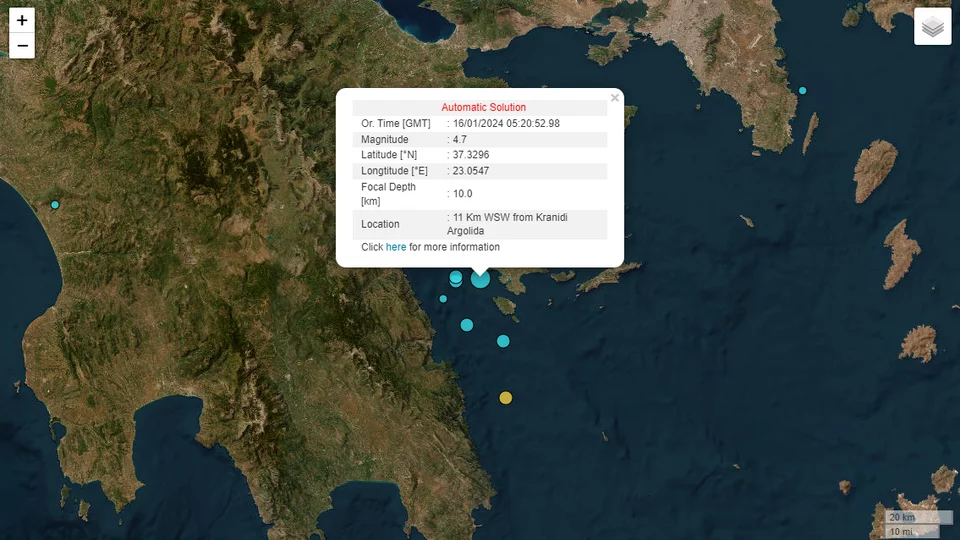 Σεισμός 4,7 Ρίχτερ στο Κρανίδι Αργολίδας – Αισθητός στην Αττική