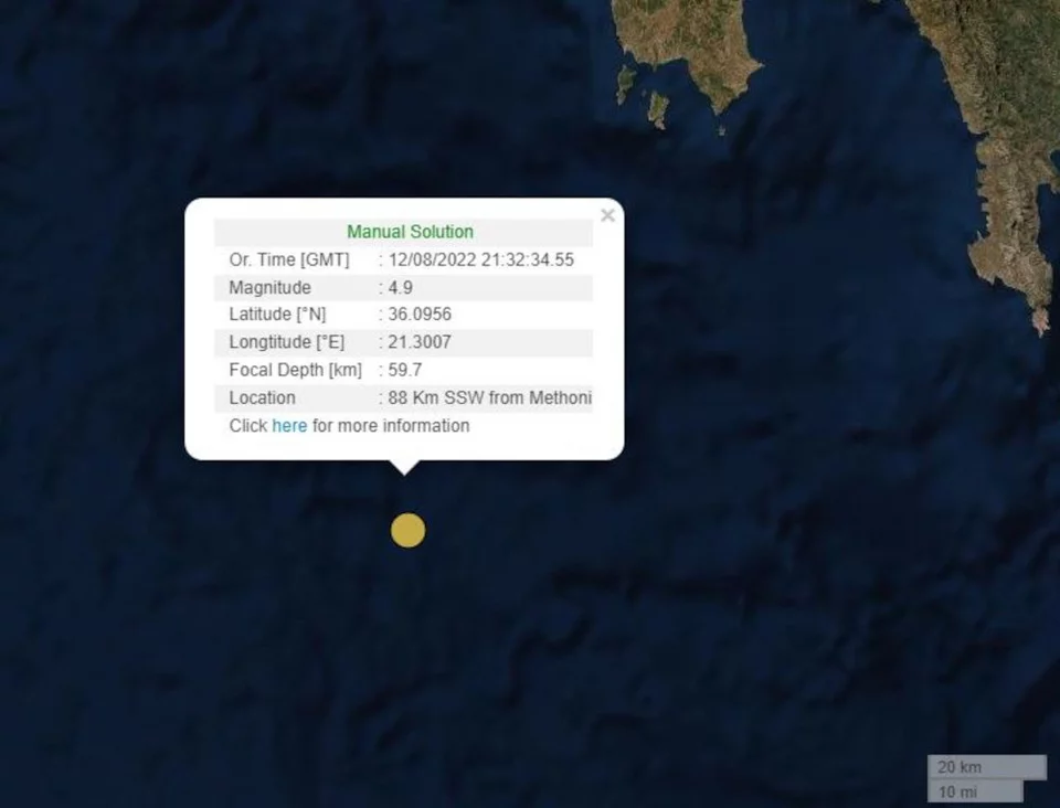 Δείτε το μέρος που σημειώθηκε ο σεισμός στη Μεθώνη:
