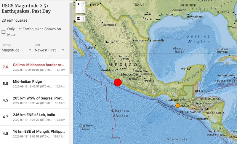 Πανικός προκλήθηκε σήμερα (19/9) στο κεντρικό Μεξικό από τον ισχυρό σεισμό μεγέθους 7,6 βαθμών της κλίμακας Ρίχτερ σημειώθηκε στην πόλη Πλασίτα δε Μορέλος στην πολιτεία Μιτσοακάν.