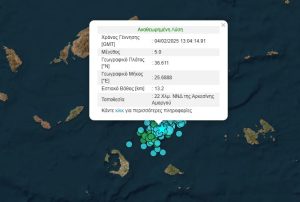 Νέος σεισμός εντάσεως 5 της κλίμακας Ρίχτερ σημειώθηκε στις 15:04 με επίκεντρο 22 χλμ νότια,νοτιοδυτικά της Αρκεσίνης Αμοργού.