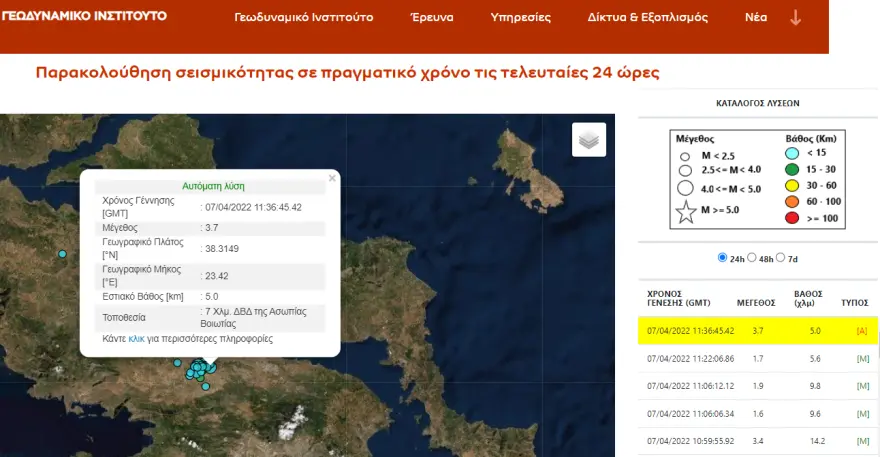Πριν από λίγο, σημειώθηκε νέα σεισμική δόνηση 3,7 Ρίχτερ κοντά στη Θήβα.