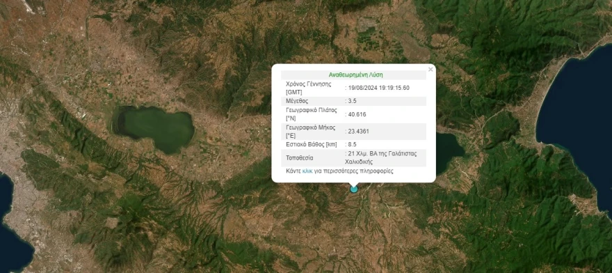 Σεισμός μεγέθους 3,6 Ρίχτερ καταγράφηκε σήμερα (19/8) το βράδυ στην ευρύτερη περιοχή της λίμνης Βόλβης.