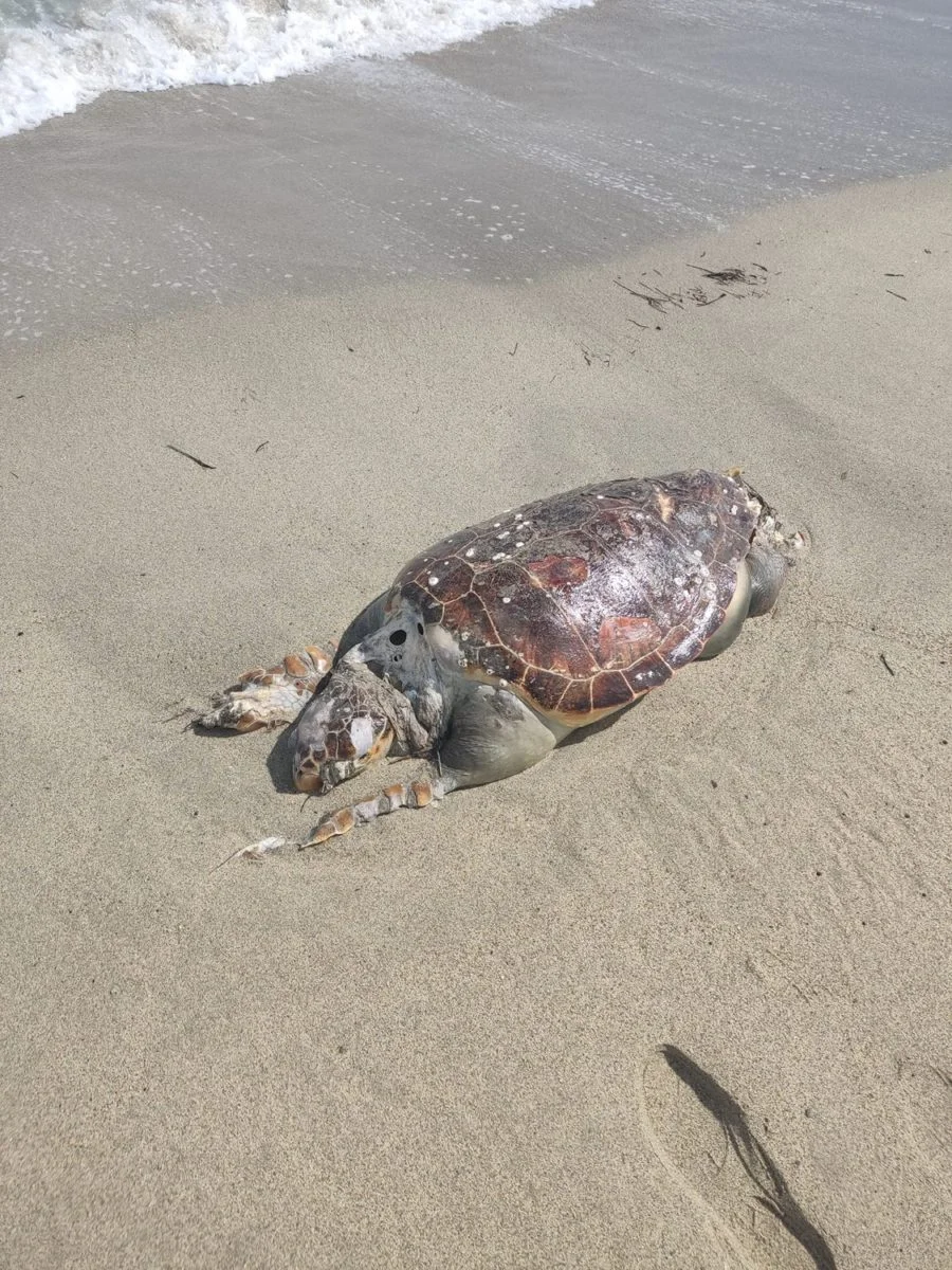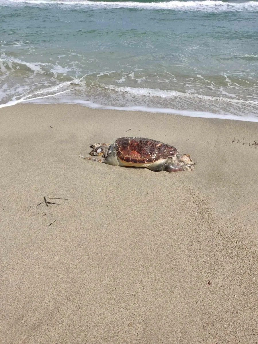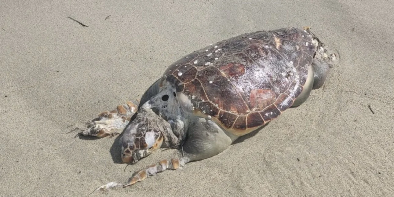 Στα παράλια των Μεσαγγάλων, στη Λάρισα ξεβράστηκε μια χελώνα καρέτα-καρέτα τη Δευτέρα.