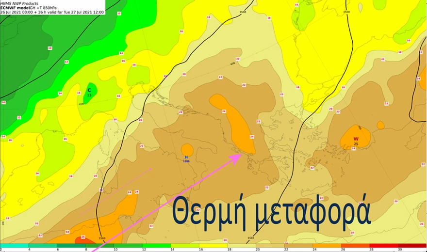 Σύμφωνα με τις πρώτες εκτιμήσεις από την Πέμπτη και μετά οι μέγιστες θερμοκρασίες θα υπερβούν σε πολλές περιοχές τους 40 βαθμούς Κελσίου και από την Παρασκευή (30-7-2021) μέχρι και την Τρίτη (3-8-2021) η θερμοκρασία θα κυμανθεί σε ιδιαίτερα υψηλά επίπεδα και οι μέγιστες τιμές της, στο εσωτερικό της ηπειρωτικής χώρας, θα φθάσουν περί τους 43 βαθμούς Κελσίου, ενώ υψηλές θα παραμείνουν οι θερμοκρασίες και κατά τη διάρκεια της νύχτας, με τις ελάχιστες τιμές πάνω από τους 25 με 26 βαθμούς Κελσίου.