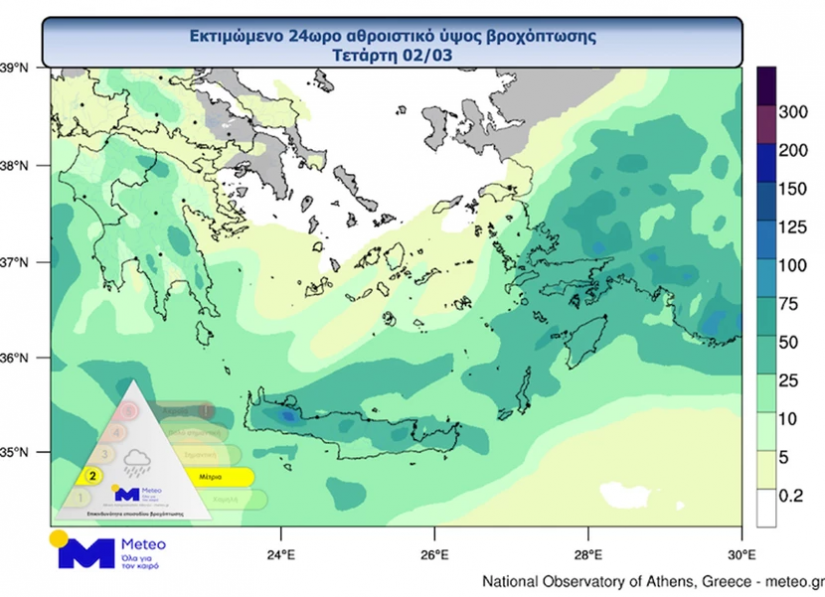 Το αναμενόμενο επεισόδιο βροχοπτώσεων είναι Κατηγορίας 2, όσον αφορά τον πενταβάθμιο Δείκτη Επικινδυνότητας Επεισοδίου Βροχόπτωσης (Regional Precipitation Index – RPI) του meteo.