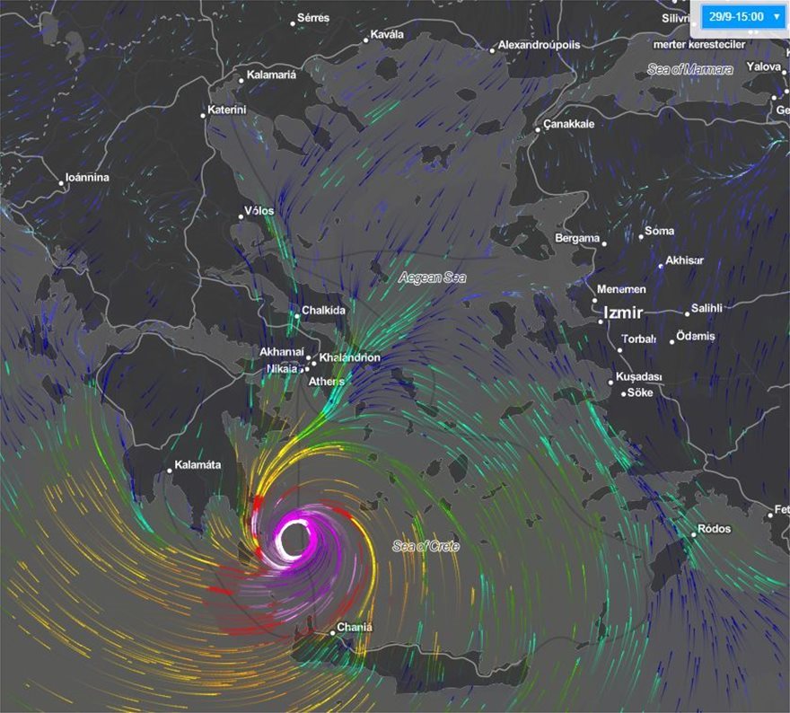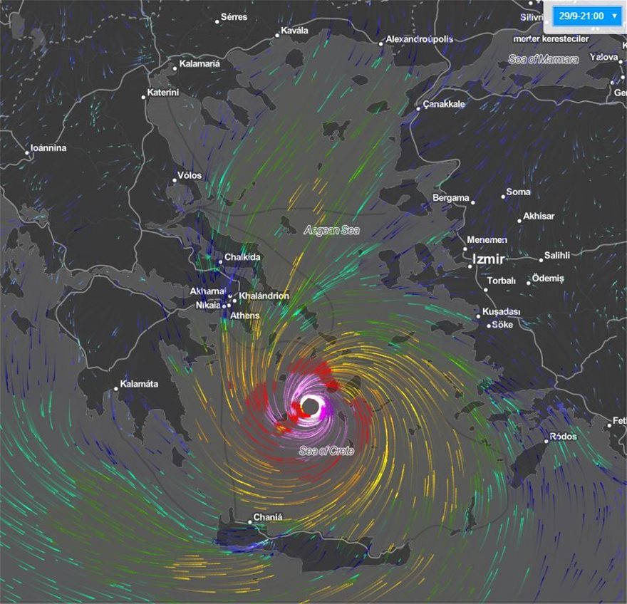 Σύμφωνα με τον ιστότοπο severe-weather.eu, εκτιμάται πως ο κυκλώνας ενδέχεται να ακολουθήσει μια πιο νότια διαδρομή από αυτήν που υπολογιζόταν αρχικά. Ειδικότερα, εκτιμούν ότι θα προσεγγίσει την Κρήτη και πιθανώς τη νότια Πελοπόννησο το Σάββατο, για να φτάσει στη νοτιοδυτική Τουρκία την Κυριακή αφού διασχίσει το νότιο Αιγαίο.