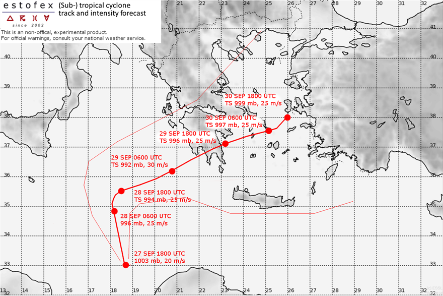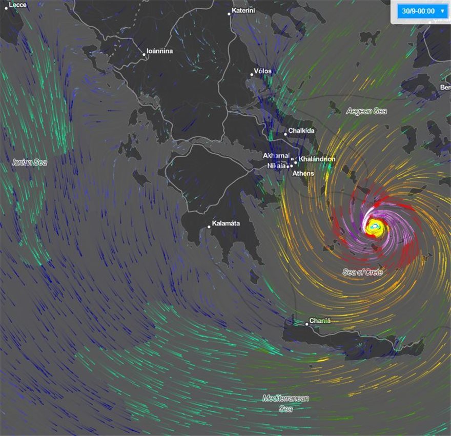 Ο κυκλώνας περίπου στις 12 το μεσημέρι του Σαββάτου, αναμένεται να βρίσκεται πάνω στα Κύθηρα