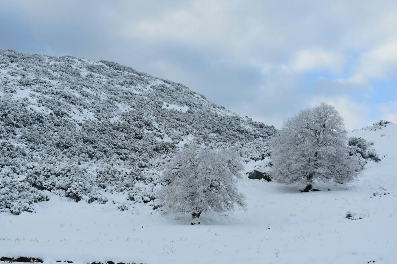 Αποκλεισμένο από τα χιόνια το κομμάτι που ενώνει την Παλαιά Εθνική Οδό Αθηνών – Θηβών με την Ιερά Μονή Προφήτη Ηλία Ερυθρών Αττικής, συνολικού μήκους περίπου 3,5 χλμ.