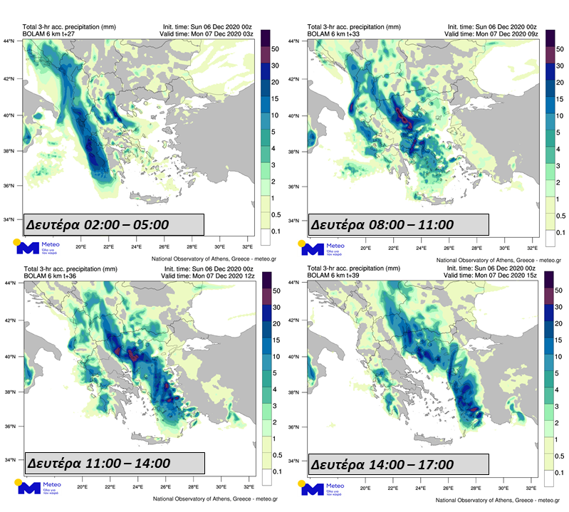 Αναλυτικότερα, σύμφωνα με τα διαθέσιμα προγνωστικά στοιχεία του Εθνικού Αστεροσκοπείου Αθηνών/Meteo.gr, ισχυρές βροχές και καταιγίδες αναμένονται τις νυχτερινές ώρες της Κυριακής προς τις πρώτες πρωινές ώρες της Δευτέρας αρχικά στα δυτικά, οι οποίες βαθμιαία θα κινηθούν ανατολικά επηρεάζοντας έως το βράδυ το μεγαλύτερο τμήμα της χώρας μας.