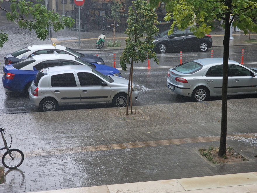 Τα καιρικά φαινόμενα ξεκίνησαν από την ανατολική πλευρά της πόλης και έφτασαν στη συνέχεια στη δυτική πλευρά, με τη δυνατή βροχόπτωση να συνοδεύεται από ισχυρούς ανέμους.