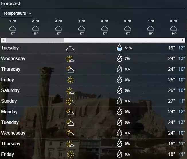 Ενδεικτική είναι και η θερμοκρασία των επόμενων ημερών όπως φαίνεται από την εφαρμογή Yahoo Weather για την εφαρμογή της Αθήνας: