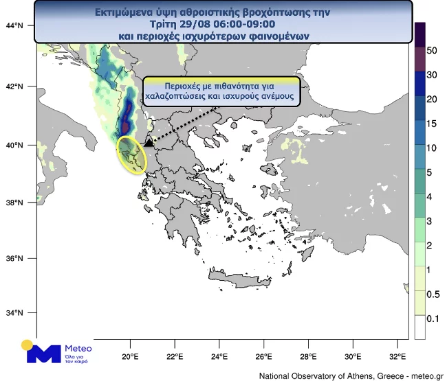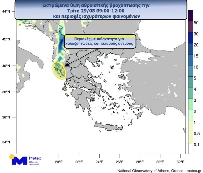 Τα νεότερα προγνωστικά στοιχεία του Εθνικού Αστεροσκοπείου Αθηνών/meteo.gr, προβλέπουν τοπικές βροχές και καταιγίδες τις πρώτες πρωινές ώρες της Τρίτης κυρίως σε τμήματα του Βορείου Ιονίου και της βορειοδυτικής ηπειρωτικής χώρας.