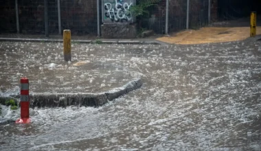 Οι δρόμοι έχουν μετατραπεί σε ποτάμια, καθώς ο όγκος του νερού που έπεσε μέσα σε μια μόλις ώρα αναλογεί σε δύο μέρες βροχόπτωσης.