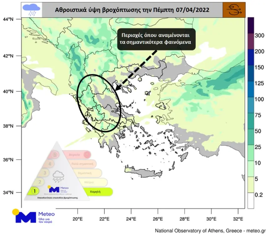 Σύμφωνα με τα προγνωστικά στοιχεία του Εθνικού Αστεροσκοπείου Αθηνών / Meteo.gr, τοπικές βροχές θα εκδηλωθούν την Πέμπτη 07/04, κυρίως στα δυτικά, κεντρικά και βόρεια τμήματα της χώρας.