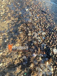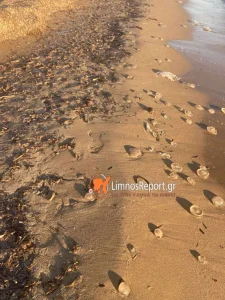 Πρόκειται για την πιο πολυσύχναστη παραλία του νησιού τους καλοκαιρινούς μήνες, όπως αναφέρει το limnosreport, με πολίτες που βρέθηκαν στην περιοχή, να αντικρίζουν εκατοντάδες μέδουσες, που γέμισαν την αμμουδιά στην παραλία.