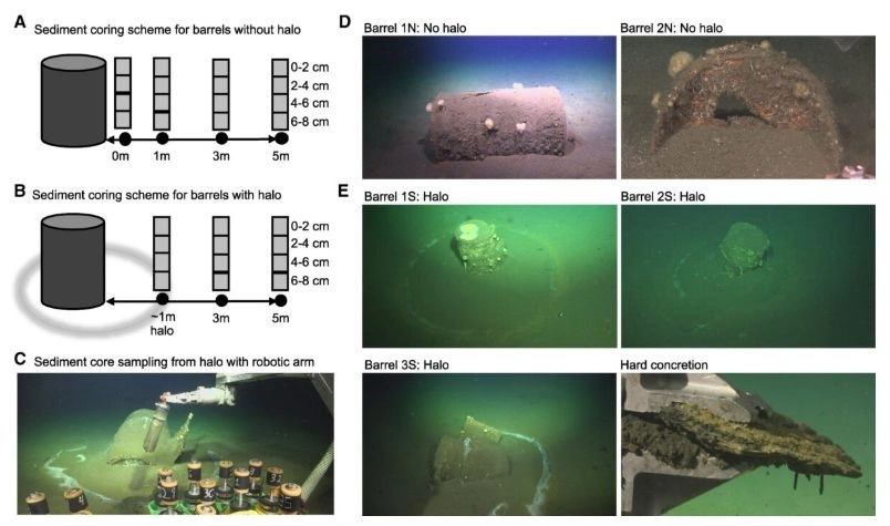 Ερευνητικές ομάδες εντόπισαν διαρροές ισχυρά αλκαλικών ουσιών από βαρέλια στον βυθό, οι οποίες δημιουργούν «νεκρές ζώνες», όπου η θαλάσσια ζωή είναι σχεδόν ανύπαρκτη.