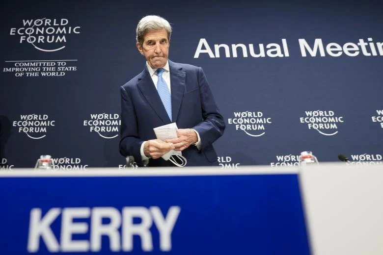 John Kerry, flying into Davos, telling everyone: