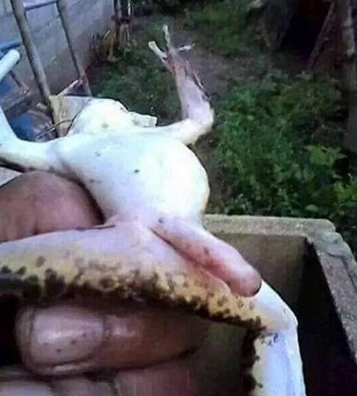 Σε μία από αυτές, ο βάτραχος είναι ξαπλωμένος ανάσκελα και διακρίνεται ανάμεσα στα πόδια του το μεγάλο του μόριο. Οι εικόνες είχαν προκαλέσει μεγάλη έκπληξη.