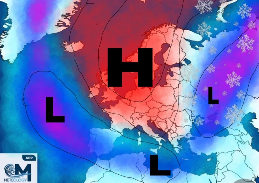 Η μετατόπιση του αντικυκλώνα θα επιτρέψει σε βαρομετρικά χαμηλά από τον Ατλαντικό να βρουν “δίοδο” προς τη Μεσόγειο, την ίδια στιγμή που το ψύχος της Ρωσίας θα μπορεί πλέον να κατέβει ανενόχλητο προς τα Βαλκάνια.