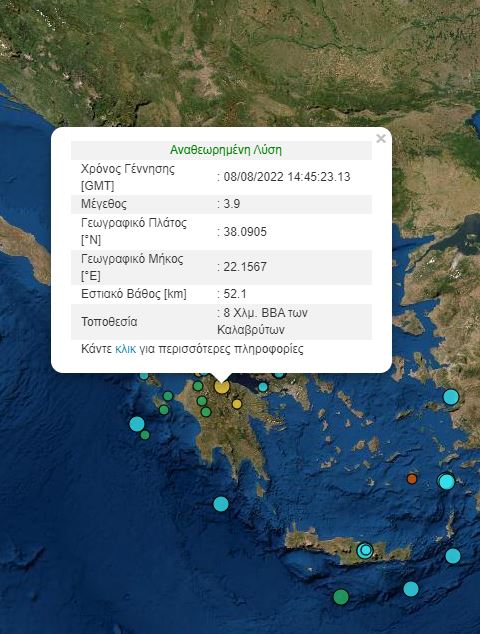 Το απόγευμα της Δευτέρας 8 Αυγούστου, σημειώθηκε σεισμική δόνηση μεγέθους 3,9 βαθμών της κλίμακας Ρίχτερ στα Καλάβρυτα.