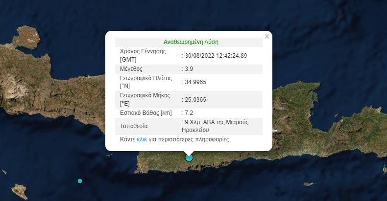Σεισμική δόνηση 3,9 Ρίχτερ στο Ηράκλειο Κρήτης (φώτο)