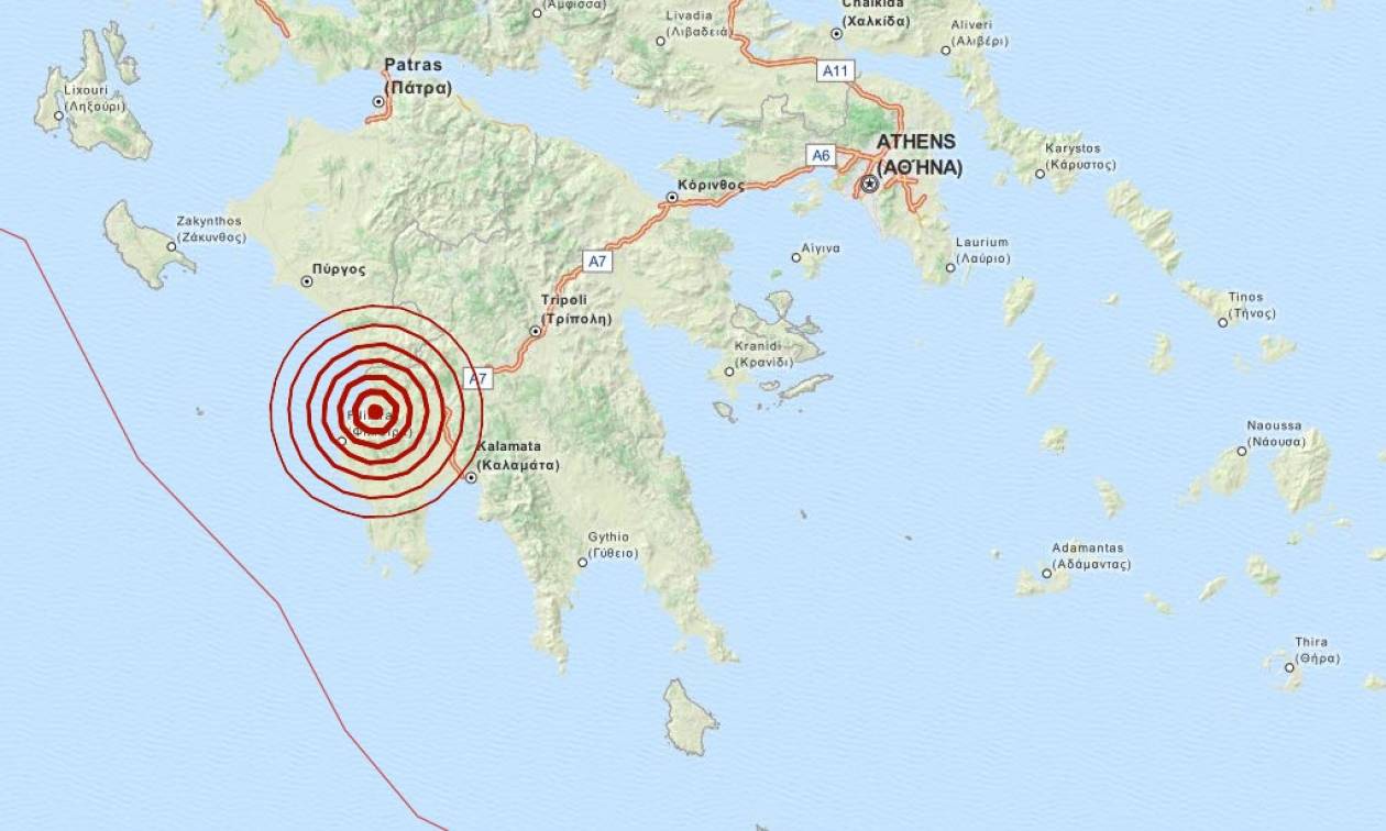 Σεισμός μεγέθους 3,6 βαθμών της κλίμακας Ρίχτερ σημειώθηκε σε θαλάσσιο χώρο ανοιχτά της Μεσσηνίας, κοντά στην Κυπαρισσία.