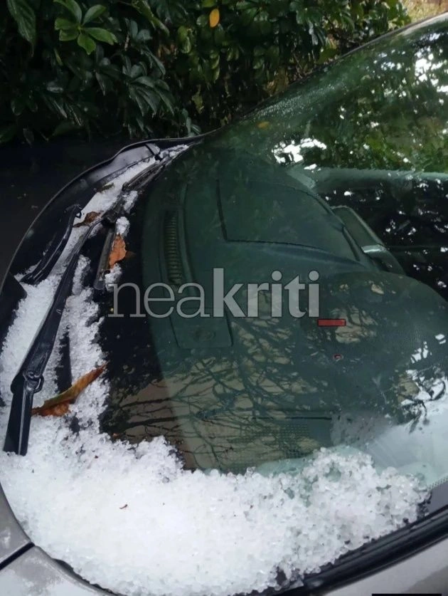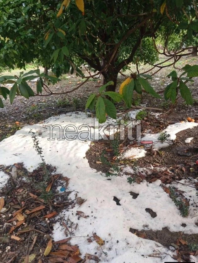 Σε αρκετά σημεία καταγράφηκε χαλάζι, επιβεβαιώνοντας τη δυναμική είσοδο της κακοκαιρίας, όπως μεταδίδουν τοπικά μέσα.