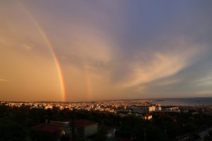 Ένα εντυπωσιακό ουράνιο τόξο φώτισε τον ουρανό της Θεσσαλονίκης το απόγευμα, προσφέροντας μια μαγευτική εικόνα που απαθανάτισε ο φωτογραφικός φακός.
