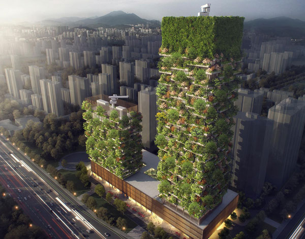 Αυτός ο άθλος καθαρισμού του αέρα θα συμβεί με την φύτευση 1.100 δέντρων από 23 τοπικά είδη και 2.500 θάμνων. Οι ουρανοξύστες θα διαθέτουν γραφεία, καταστήματα, ξενοδοχείο και εστιατόρια, ενώ είναι οι πρώτοι που δημιουργούνται στην Κίνα και θα ολοκληρωθούν το 2018.