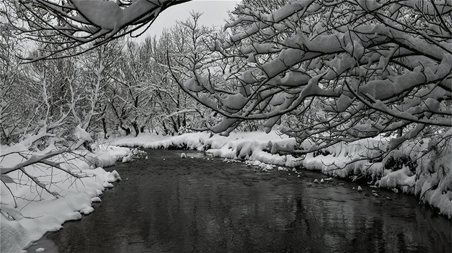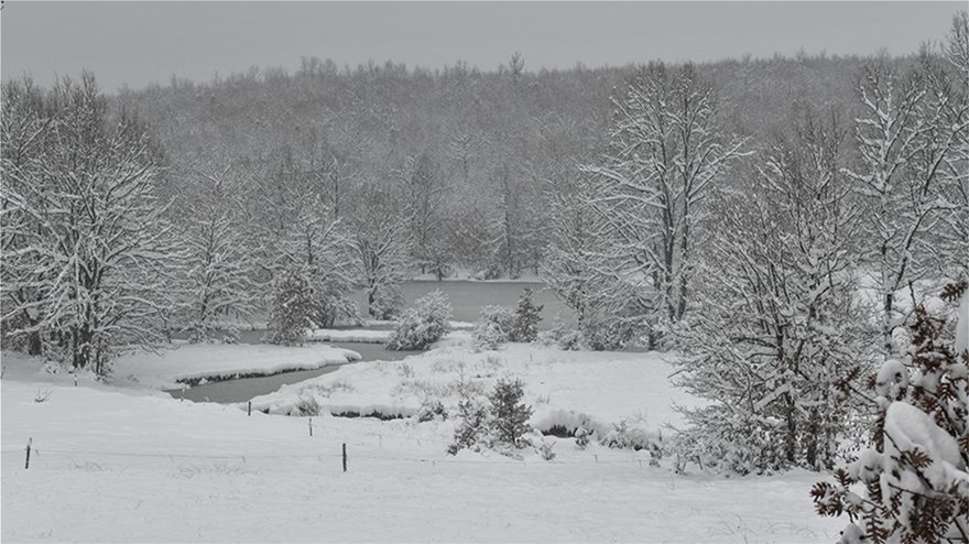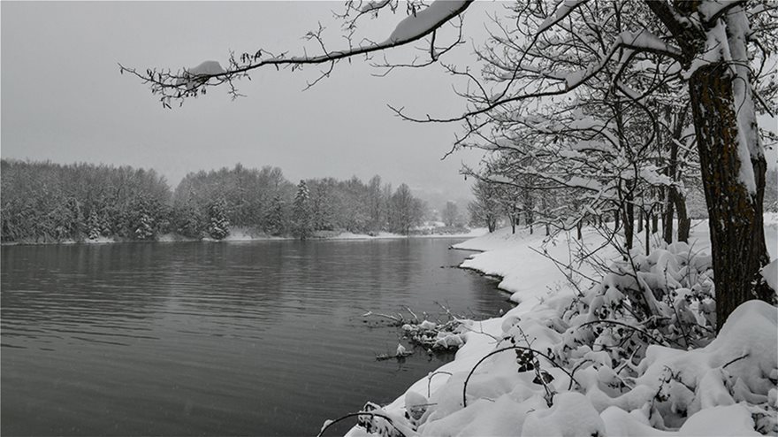 «Μαγικές» εικόνες δημιουργεί η χιονισμένη λίμνη Πλαστήρα.